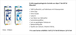 „Wenn man über Ernährung spricht, kommt man um das Thema Nachhaltigkeit kaum noch herum, das spiegeln uns auch Fachkräfte, die beispielsweise in der Beratung tätig sind“, berichtet Hannah Geupel, External Scientific Affairs & Nutrition Manager bei Alpro. „Gesundheitliche Aspekte spielen dort natürlich nach wie vor die Hauptrolle, aber eben nicht mehr nur. Viele Menschen wollen mehr tun und einen Beitrag zu mehr Nachhaltigkeit leisten. Gleichzeitig möchten sie aber auch nicht auf den Geschmack ihrer gewohnten Lebensmittel verzichten. Mit den NOT M*LK Drinks Pflanzlich ist es uns gelungen, eine neue Generation pflanzlicher Drinks anzubieten, die beides ermöglichen und den Wechsel zu pflanzlichen Drinks ganz einfach machen.“