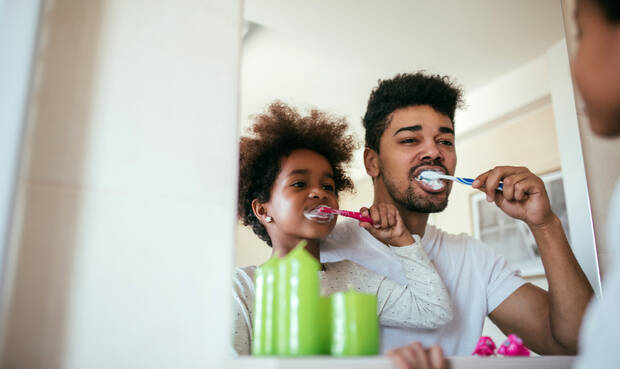 Ab dem ersten Geburtstag wird empfohlen, die Kinderzähne zweimal täglich mit einer reiskorngroßen Menge Zahnpasta mit Fluorid zu putzen. Eltern sollten dabei auf eine genaue Dosierung achten, da Säuglinge und Kleinkinder die Zahnpasta noch nicht ausspucken können. Nach dem zweiten Geburtstag sollten die Zähne zweimal täglich mit einer erbsengroßen Menge Zahnpasta geputzt werden. Das Kind erlernt das Zähneputzen und die Eltern putzen die Zähne ihrer Kinder sauber. Ein drittes Zähneputzen in Kindergärten und Kitas kann ergänzt werden.