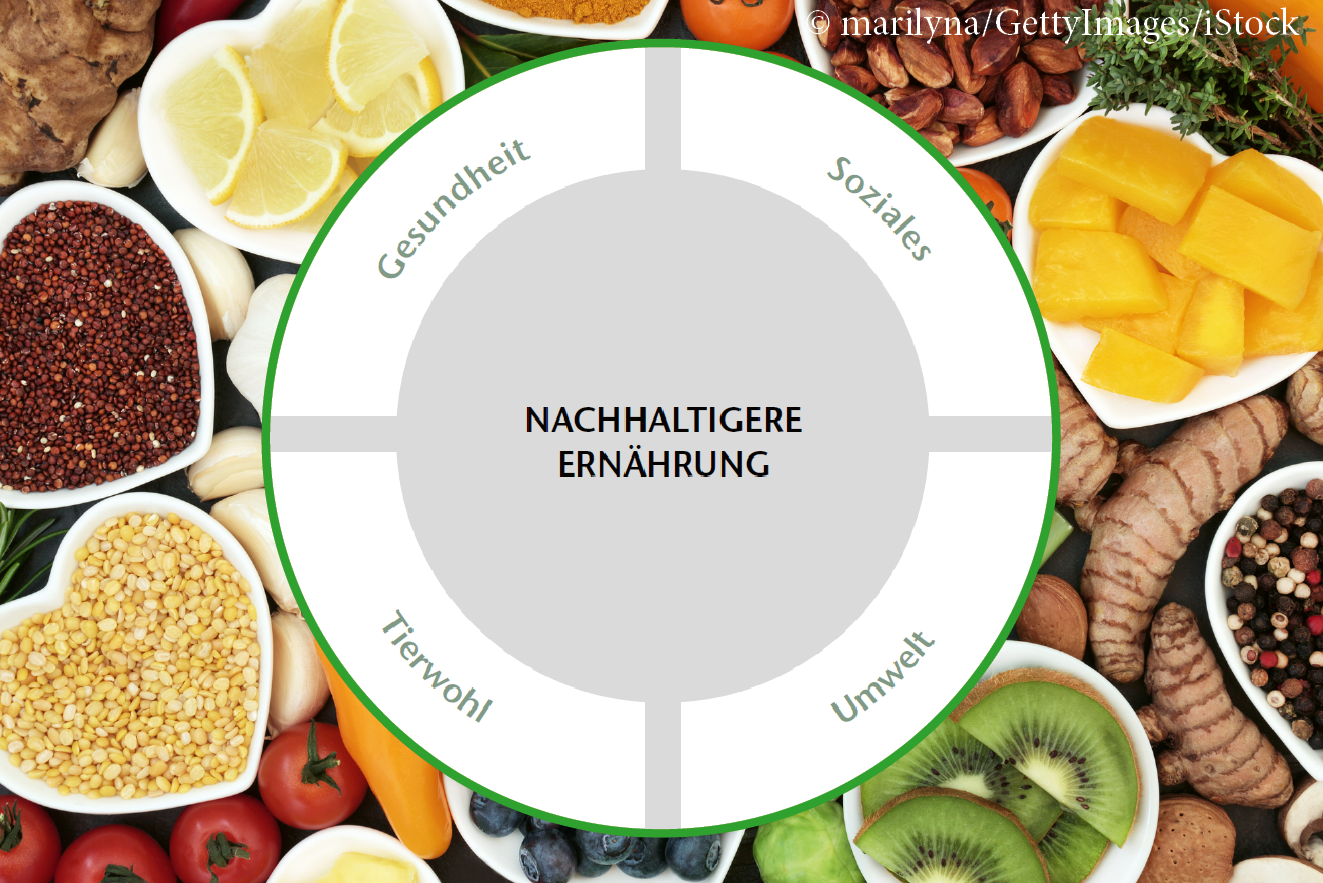 Nachhaltigkeit ist mittlerweile weltweit ein zentraler Begriff gesellschaftlichen Handelns und gesellschaftlicher Verantwortung. 2020 hat der Wissenschaftliche Beirat für Agrarpolitik, Ernährung und gesundheitlichen Verbraucherschutz beim deutschen Bundesministerium für Ernährung und Landwirtschaft (WBAE) in seinem Gutachten „Politik für eine nachhaltigere Ernährung. Eine integrierte Ernährungspolitik entwickeln und faire Ernährungsumgebungen gestalten“, Gesundheit, Soziales, Tierwohl und Umwelt als die vier Zieldimensionen zur Umstellung des derzeitigen Ernährungssystems auf mehr Nachhaltigkeit definiert [1].