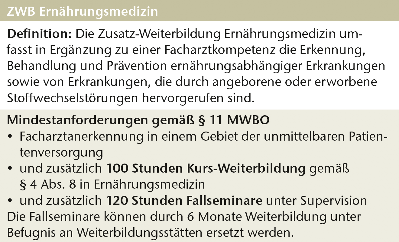 Definition und Anforderungen werden dort genau definiert (• Abbildung), ebenso wie eine Reihe weiterer Zusatz-Weiterbildungen wie z. B. Diabetologie, Allergologie oder Akupunktur. Ärzte mit entsprechender Zertifizierung können diese Bezeichnung ab jetzt offiziell führen.