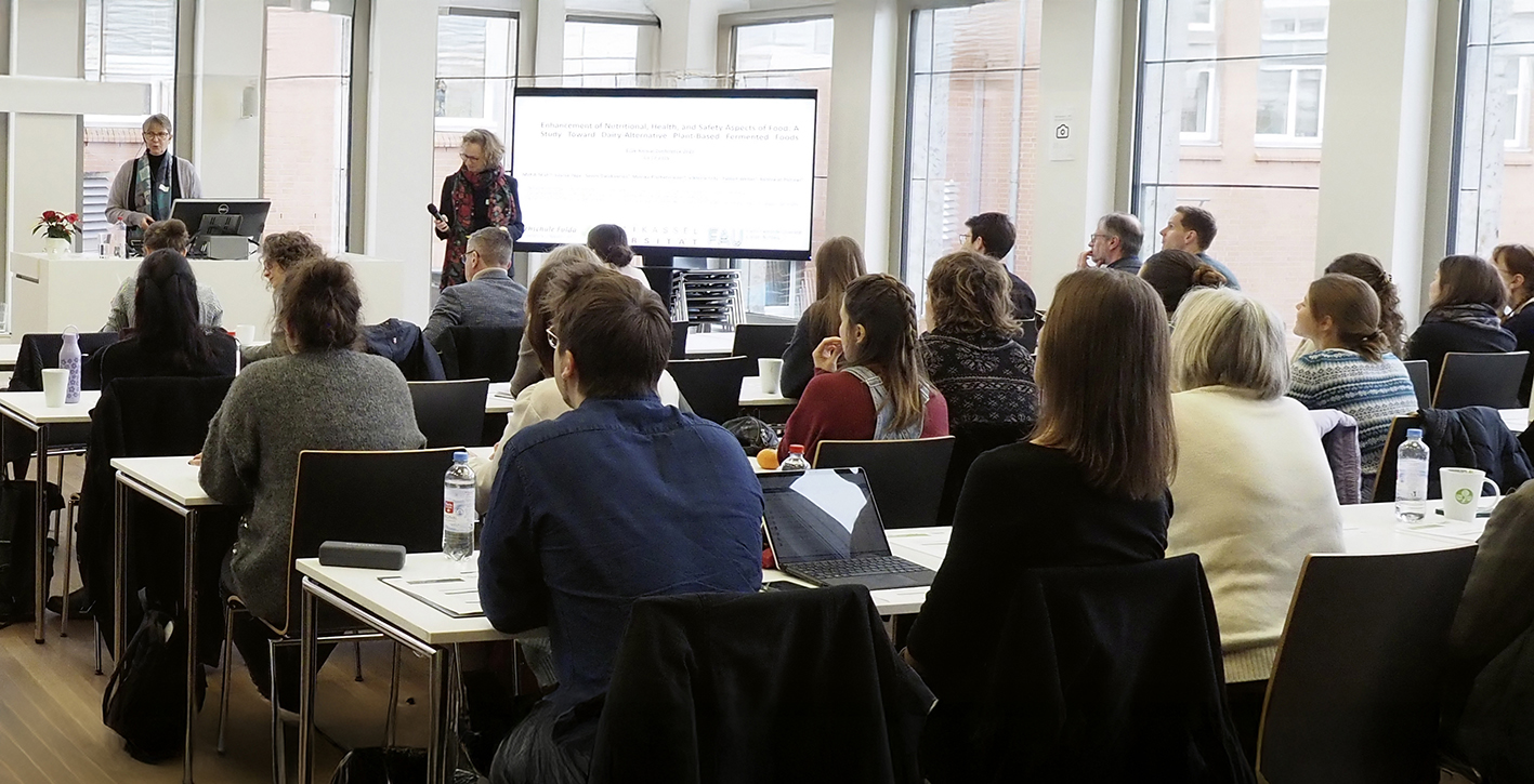Prof. Rohtraud Pichner stellte die Arbeit von Mehdi Shah, Hochschule Fulda, vor. Shah befasst sich u. a. mit der Rezeptur- und Prozess-Optimierung bei der Herstellung von pflanzenbasierten Joghurt-Alternativen. Denn vegane Alternativprodukte sind auch auf die (geschmackliche) Akzeptanz von Nicht-Veganer*innen angewiesen, um sich im Lebensmittelhandel zu behaupten; die reine Nachfrage von Veganer*innen ist noch zu gering.